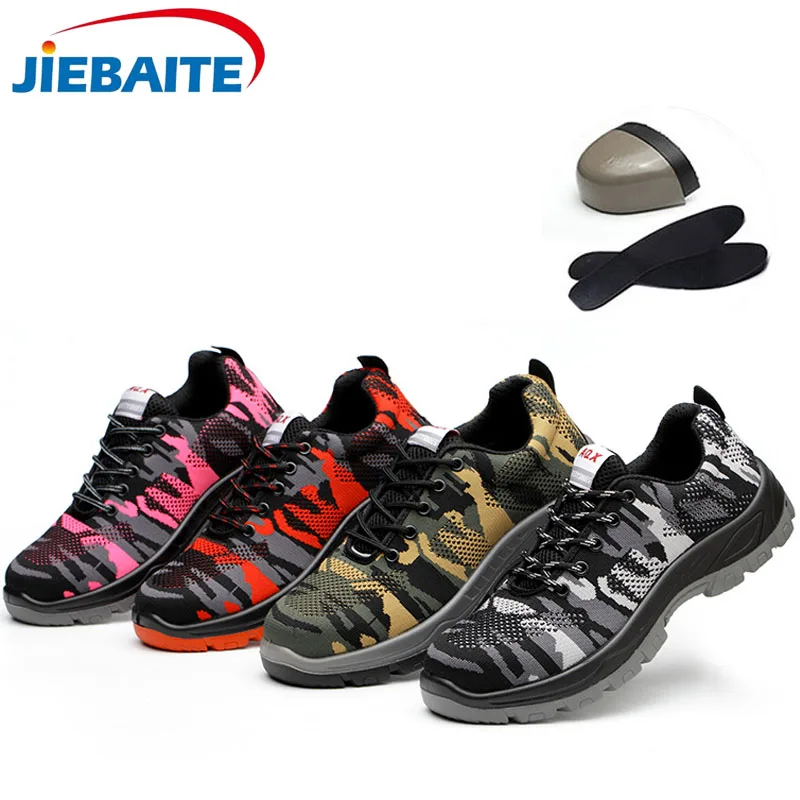 Men Breathable Work Safety Shoes Steel Toe Cap Boots Anti-smashing Anti-puncture Anti-slip Camel Co