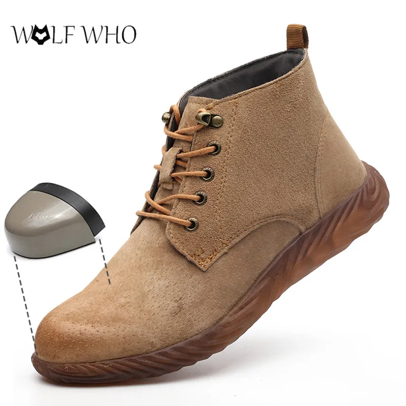 Men Work Shoes Leather Cap Toe Steel Indestructible Outdoor Stab-Resistant Construction Safety Boot